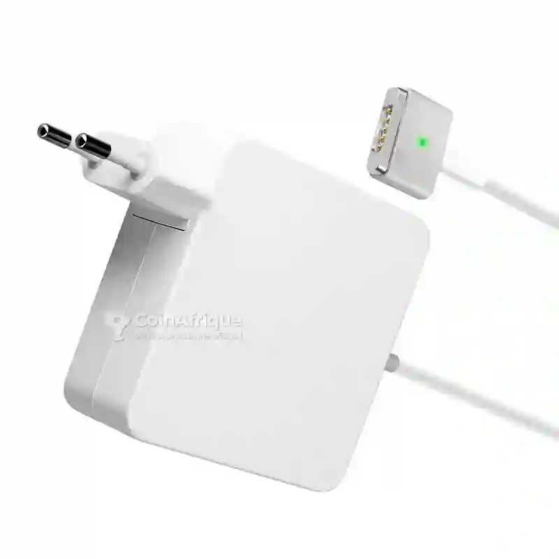 chargeur apple magsafe 2 45w pour macbook air (port magsafe 2 uniquement). clic ! le connecteur magnétique se fixe; oups ! il se détache si on tire dessus : moins de chutes, câble mieux protégé. led orange/verte pour suivre la charge. recharge en veille/éteint et peut alimenter le mac. câble secteur + prise murale inclus : parfait maison/bureau au sénégal. système de protection contre les surintensités et les surtensions intégrée préservant votre chargeur et votre appareil connecté. charge rapide mots-clés : chargeur macbook air, adaptateur secteur apple, magsafe 2 45w.