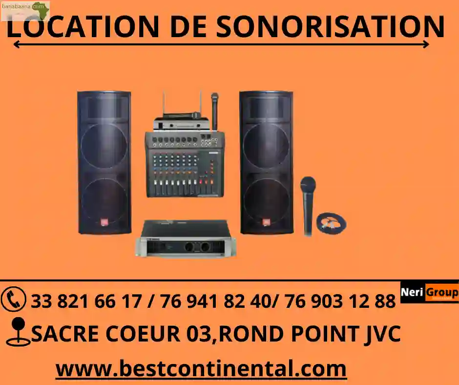 Vous avez besoin d'une sonorisation pour vos événements (fêtes, anniversaire, soirée...), NERI GROUP met à votre disposition d'une sonorisation de qualité sonore. La sonorisation est compatible pour : Sonorisation pour (intérieur) salle, Sonorisation pour extérieur. LOCATION Sonorisation PM : 80.000 f la journée LOCATION Sonorisation MM : 100.000 f la journée LOCATION Sonorisation GM A: 150.000 f la journée NB: Durée de location (24h) : de 08h à 23h. LIVRAISON PARTOUT A DAKAR