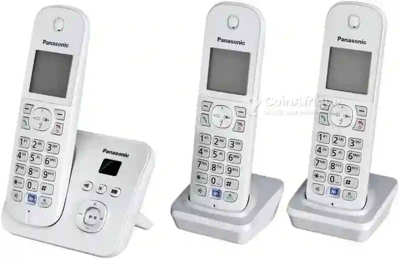 Pack de 3 téléphones fixes sans fil trio dect avec répondeur - panasonic kx-tg6823 pack téléphones fixes sans fil trio (3 combinés ) dect panasonic, avec des fonctionnalités intelligentes. répertoire : 120 contacts, mains libres , nombre de combinés supplémentaires : 6, sonneries polyphoniques, écran rétro-éclairé haut-parleur et répondeur automatique portée : 100m vendu sans pile tout simplement élégant un design compact et fin. une forme parfaite pour la main. utilisation et fonctions faciles à comprendre. le style dans la simplicité. réduction du bruit de fond de l’autre partie