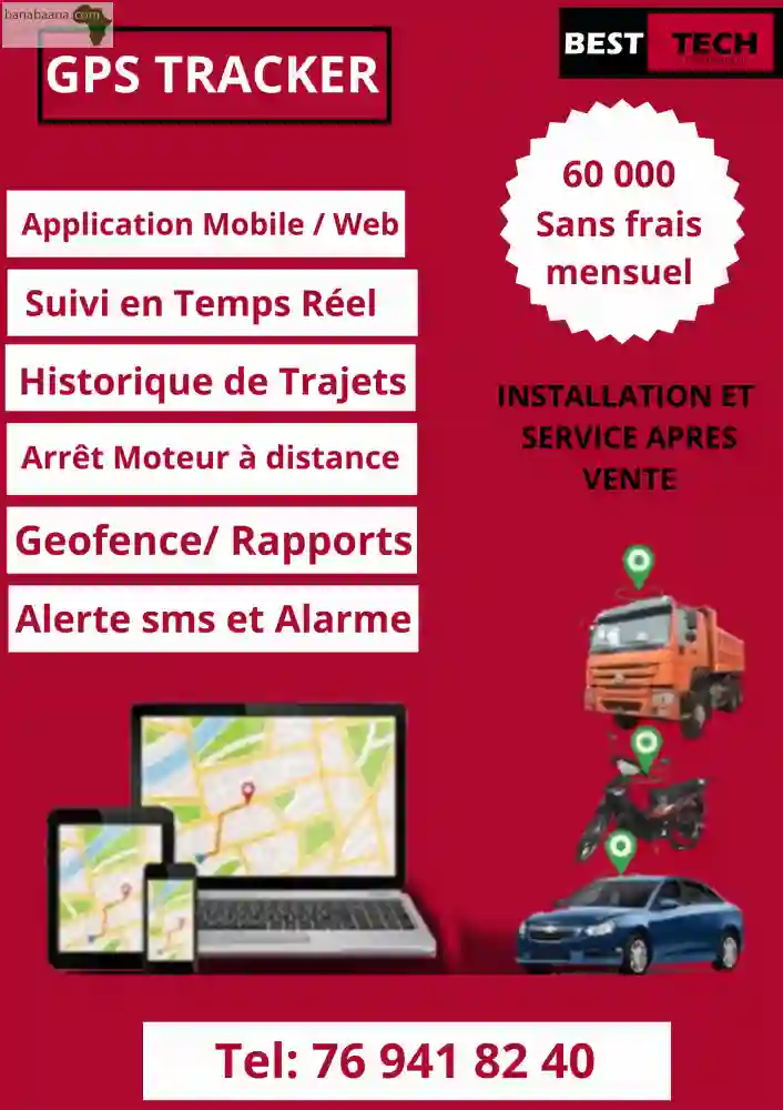 Chers clients, nous vous proposons des GPS AUTOMOBILE (système de Géolocalisation) les plus précis et complète pour tracer vos Véhicules, vos Motos et Camions. Ce système vient avec une plateforme et un logiciel avec les fonctionnalités suivantes: Suivi en temps réel de l’engin; Eteindre le moteur de l’engin à distance; Rapport sur la vitesse, le point stationnement, consommation…; Délimitation de la zone de circulation de l’engin; Limitation de vitesse; Historique de parcours. PRIX : 55 000fcfa INSTALLATION : 5 000fcfa